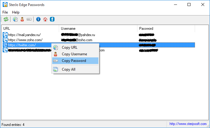 SterJo Edge Passwords is a small utility which will recover all your forgotten login details stored by the new Microsoft Edge browser. It would also display the URL, including the username and password for each entry.Microsoft Edge is a new replacement for the old Internet Explorer browser which supposed to offer more stable, faster and safer browsing. It also allows you to save login credentials and use them when necessary. Using this tool you could recover all those details within a second in case you have forgotten them and as simple as possible.