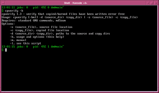 cpverify verifies that a file or directory structure has been copied or burned without errors. That is, the copied file(s) is exactly the same as the original. This is done by calculating a cryptographic checksum using the md5 message-digest algorithm on each file from the source and the copy destination. The checksums for each file are then compared. Any difference indicates that the copied file is not the same as the original source file. Similar Software