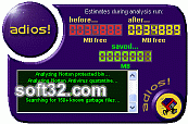 Adios! Extreme File System Cleaner by Martin Beek - safely removes 150+ application- and Windows garbage files from your computer. Empties garbage bins, Norton virus quarantine, Norton protected bins, Internet browser cache(s), sensitive usage information, memory dumps, Windows update and servicepack-2 garbage and much more.Fully configurable. Analysis, (de-)selection and deletion stages. Uses fast low-level filesearch routines. Free download. Program can be easily updated with "pattern files" provided by the author. Now optimized for Windows XP.