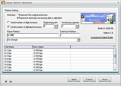 Aoao Batch Rename is a easy and comprehensive piece of software that enables you to multiple rename your files at once.It's support import all file formats, batch rename just moment, but also a freeware.