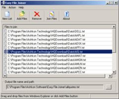 Easy File Joiner is a simple software to join files. If you have downloaded parts of a larger file or want to combine multiple text or MPG files this tool is for you. Easy File Joiner only works with files with no header information, so joining formats such as MP3, AVI, BMP, JPEG will not work, you would have to use other products. Drag and grop interface is supported. Similar Software