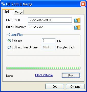 This tool is used for splitting a file into multiple parts. There are two ways to split a file using this: split into a fixed number of files or split into files of a specific size each. From the Split Page, you can select the file you want to split, select the output directory and hit the 'Run' button. The application creates Files with numbered extensions. From the Merge Page select the input files. When you add files, it tries to sort based on the extensions, if they are numbered. If they are not in the right order, you can move them up and down. Hit the 'Run' button to start merging. During a long split or merge process, you can hit the cancel button to stop the process.