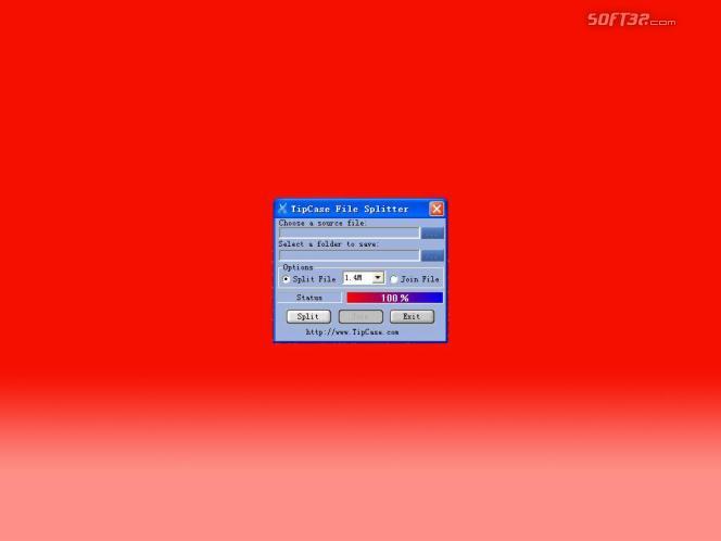 TipCase File Splitter is a windows application to cut and split large file to small files for easier taking away or sharing. TipCase support splitting file to 1.4M or much smaller size, and also included a joiner to join splitted files back into origenal large file. TipCase File Splitter is a freeware, you can deliver it or publish it anywhere you want.