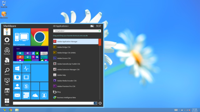 Manage Desktop and Modern Applications: Launch both traditional desktop programs and new Windows 8 modern applications directly from the Start Menu. No other product allows you to do this.