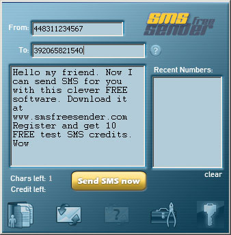 Send SMS messages from your PC with free nice interface everywhere you want. Used gateway is the world leading provider with coverage to 578 networks in 192 countries worldwide. Register now for FREE, GET immediatelly 10 FREE credits. What will this great SMS Sender do for you? -Cheap pricing per Message - Easy and Immediate integration - Zero Up Front Cost - Fast Delivery - Controll of SMS delivery Enjoy new dimension of SMS sending. Similar Software