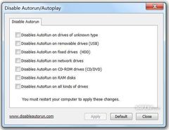 Disable Autorun/Autoplay is a freeware to disable or enable the Autorun/Autoplay feature of Windows, online help will be available on disableautorun.com, no complex operations, very easy to use. Similar Software