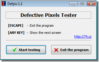 Defpix - Defective (dead) pixels tester is a free program that can help you with checking for defective pixels on your LCD screen. The program simply shows these colors - red, green, blue, white and black - over the whole surface of the screen. Defpix requires no installation and supports multiple monitor systems. Similar Software