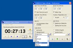 In today's world we sit without moving for long hours in front of the computer screen. We hurt our eyes, shoulders, backs, and wrists. A short break every once in a while can reduce repetitive-stress injuries associated with computer usage. This free utility, which rests in the system tray, reminds us when to take a break, and it does so in style.Some features include: complete customization of work, snooze and break times; visual and/or audio notifications; choice of displaying timer, starting screen saver or locking the workstation when on break; variety of tray icons for more discretion at work; statistics on time spent working, break time and averages per hour; motivational pie-chart.