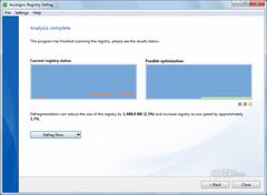Microsoft Windows and various programs access the Registry a few hundred times a second. Therefore a slow Registry is one of the major reasons why your computer may be so slow. Auslogics Registry Defrag can significantly speed up your computer by helping you to defragment the Registry, remove gaps and make it contiguous, smaller and faster to access.Even a novice user can easily speed up and optimize the Registry with this program. It provides stunning visual representation of the fragmented areas in your Registry and what the Registry looks like after defragmentation. Upon defragmenting the Registry on your computer, the program will display an HTML report with comprehensive details about the defragmentation process.
