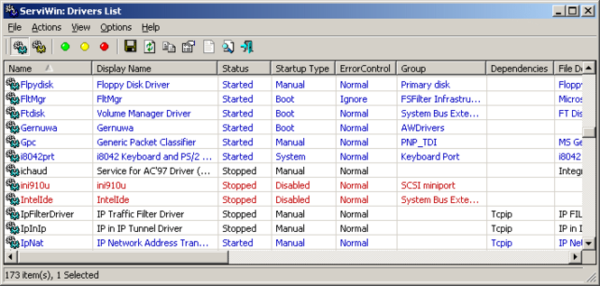 ServiWin utility displays the list of installed drivers and services on your system. For some of them, additional useful information is displayed: file description, version, product name, company that created the driver file, and more. In addition, ServiWin allows you to easily stop, start, restart, pause, and continue service or driver, change the startup type of service or driver (automatic, manual, disabled, boot or system), save the list of services and drivers to file, or view HTML report of installed services/drivers in your default browser.