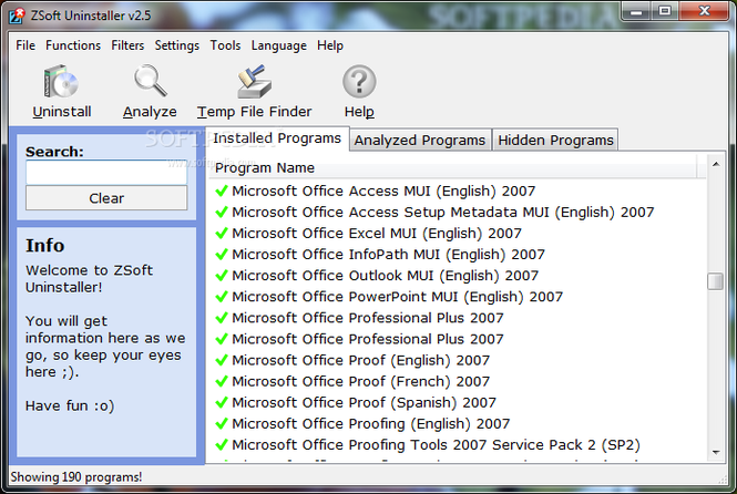 ZSoft Uninstaller is the better and easier way to uninstall programs on your computer. ZSoft Uninstaller can be used as a Add/Remove applet replacement, but not only that, it can also: - Analyze an installation so it can be completely uninstalled (also supports reboots of the computer as the process is split into two: Before and after the installation)