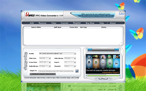 Apex Free Pocket PC Video Converter is designed to meet all your needs of convert any popular video to Pocket PC Extremely fast conversion speed and friendly user interface let you convert video files between many formats with ease. The powerful features and It's free make Apex Free Pocket PC Video Converter an affordable and powerful video conversion solution on personal computer.Key features :