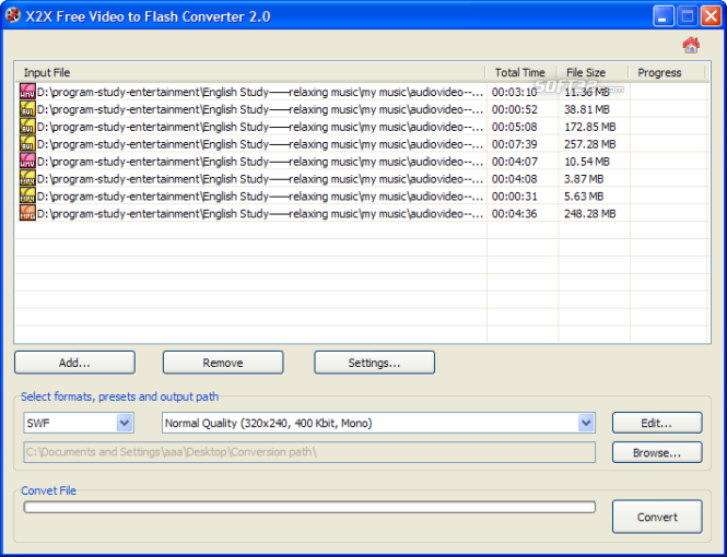 X2X Free Video to Flash Converter can smartly convert video into flash SWF and FLV. It is possible to load multiple videos into the application and convert them in a batch process. Videos can be loaded from the build in file browser. Many major video formats are supported by the flash converter including avi, wmv, mov, mp4, etc. It has a cool interface and it is very easy to use. It produces high quality output flash and offers a lot of unique and useful features. You can easily convert the most beautiful moment in life with it. X2X Free Flash Converter is definitely a pretty basic software program that does exactly what the user expects of it. Similar Software