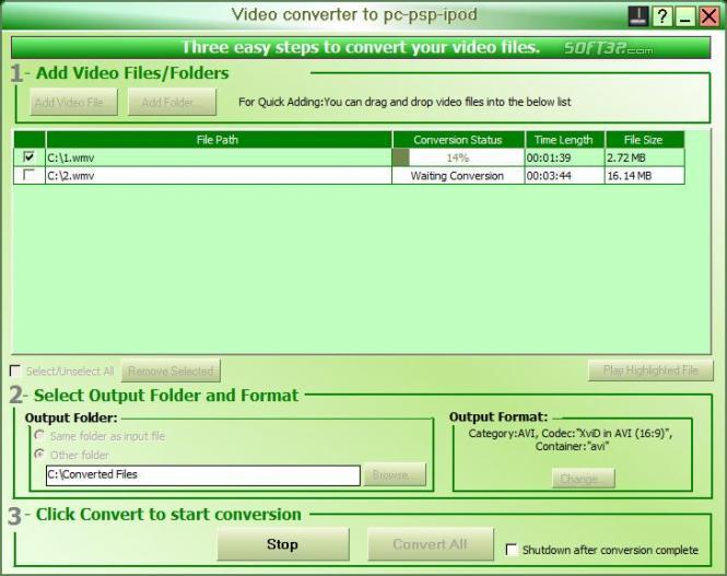 (1)Convert files from and to most common formats, including AVI, MPG, VOB, WMV, and FLV, singly or in batches.