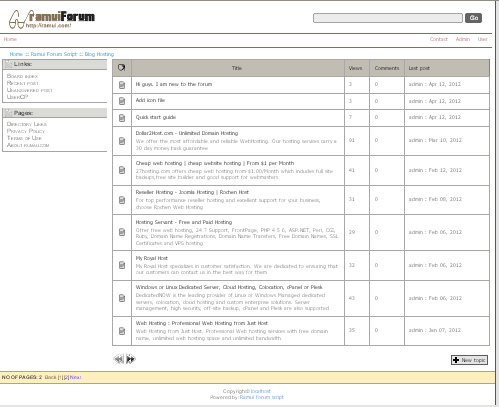 Ramui forum script is a free PHP forum script. The earlier version was a simple text based forum script, but version - 2 and above allows registered users to add files with their posts. This script has been developed to meet the requirements of the webmasters who need a safe and secure forum script for their websites. Ramui forum script has few unique advantages and limitations as well.1. Ramui forum script is very much user friendly; webmasters can easily manage the script right from the installation of this script.