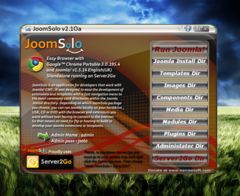 JoomSolo runs on Server2Go, a "stand alone" self configurable complete WAMPP server stack. Server2Go can run web applications directly from cdrom, a usb stick or from any folder on a hard disk without the hassle of configuring Apache, PHP or MySQL.